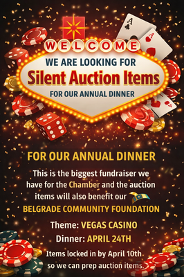 Choose your level and place your bet on community support! Prize donations valued at $25 or more Auction item donations valued at $50 or more • Business name featured on table centerpieces • Helps cover auction items as needed • Business listed in the program • Logo signage at the photo booth • Covers prizes for casino games • Helps provide safe rides home for guests • Helps cover DJ and music for the evening • Business name featured at the dessert table • One table for 8 guests🎲 Annual Dinner Sponsorship Menu 🎲